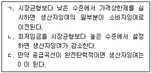 소비자잉여와 생산자잉여에 관한 설명으로 옳은 것을 모두 고른 것은? (단, 수요곡선은 우하향하고 공급곡선은 우상향한다.)