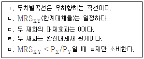 두 재화 X재, Y재를 통한 효용함수가 U=X+2Y 일 때, 다음 설명으로 옳은 것을 모두 고른 것은? (단, 모든 소득을 X재와 Y재의 소비에 지출하고 PX, PY는 각각 X재와 Y재의 가격이다.)