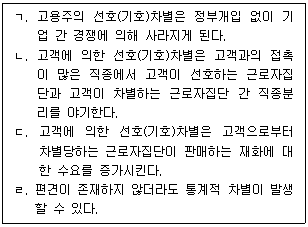 제품시장과 요소시장이 완전경쟁이고 모든 근로자의 생산성은 동일할 때, 아래 노동시장 차별에 관한 설명으로 옳은 것을 모두 고른 것은?