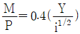 이다. 화폐수량방정식을 이용하여 명목이자율(i)이 4 일 때, 화폐의 유통속도는? (단, Y는 균형소득, M은 통화량, P는 물가이다.)