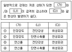 다음은 온도변화에 따른 강재의 특성에 관한 내용이다. (가)~(다)에 들어갈 말을 바르게 연결한 것은?