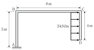 그림과 같은 캔틸레버형 구조물의 부재 AB에서 지점 A로부터 휨모멘트가 0이 되는 점과의 거리는? (단, 부재의 자중은 무시한다)