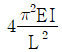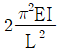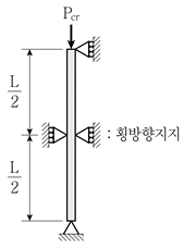 그림과 같은 길이가 L인 압축재가 부재의 중앙에서 횡방향지지되어 있을 경우, 이 부재의 면내방향 탄성좌굴하중(Pcr)은? (단, 부재의 자중은 무시하고, 면외방향좌굴은 발생하지 않는다고 가정하며, 부재단면의 휨강성은 EI이다)