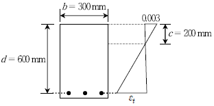 다음 그림은 휨모멘트만을 받는 철근콘크리트 보의 극한상태에서 변형률 분포를 나타낸 것이다. 휨모멘트에 대한 설계강도를 산정할 때 적용되는 강도감소계수는? (단, fy=400MPa, fck=24MPa이다)