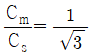 3상 1회선의 송전선로에 3상 전압을 가해 충전할 때 1선에 흐르는 충전전류는 30A, 또 3선을 일괄하여 이것과 대지사이에 상전압을 가하여 충전시켰을 때 전 충전전류는 60A가 되었다. 이 선로의 대지정전용량과 선간정전용량의 비는? (단, 대지정전용량 = Cs, 선간정전용량 = Cm 이다.)