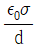 진공 중에 판간 거리가 d(m)인 무한 평판 도체 간의 전위차(V)는? (단, 각 평판 도체에는 면전하일도 +σ(C/m2), -σ(C/m2)가 각각 분포되어 있다.)