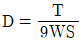 가공 전차선로에서 급전선의 이도(D)를 산출하는 관계식(m)으로 옳은 것은? (단, W: 전선의 무풍시 단위 중량(N/m), S: 경간(m), T: 표준장력(N))