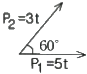 그림에서 힘 P1, P2 의 합력은 몇 [t]인가?