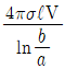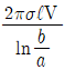내외 반지름이 각각 a, b 이고 길이가 ℓ인 동축원통도체 사이에 도전을 σ, 유전을 ε인 손실유전체를 넣고, 내원통과 외원통 간에 전압 V 를 가했을 때 방사상으로 흐르는 전류 I는? (단 RC=ερ이다.)