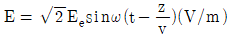 의 평면 전자파가 있다. 진공 중에서의 자계의 실효값은 약 몇 AT/m 인가?