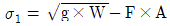 우물통형 기초에서 기초 하부의 유효지지력 σ1(kgf/m2)을 구하는 계산식은? (단, W: 하부에 가해지는 전체 수직 하중(kgf), A: 기초의 하부면적(m2), g: 지내력(kgf/m2), F: 안전율이다.)