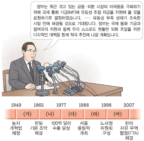 다음 발표가 있었던 시기를 연표에서 옳게 고른 것은? [2점]