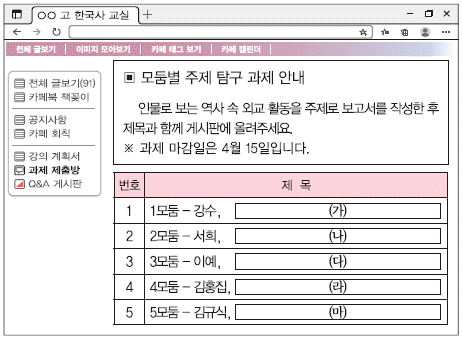 (가)~(마)에 들어갈 내용으로 옳지 않은 것은? [3점]