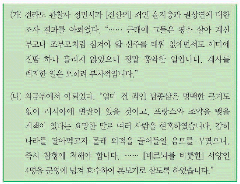 황사영이 외국 군대의 출병을 요청하는 백서를 작성하였다.