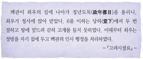 최충헌이 교정별감이 되어 국정을 총괄하였다.
