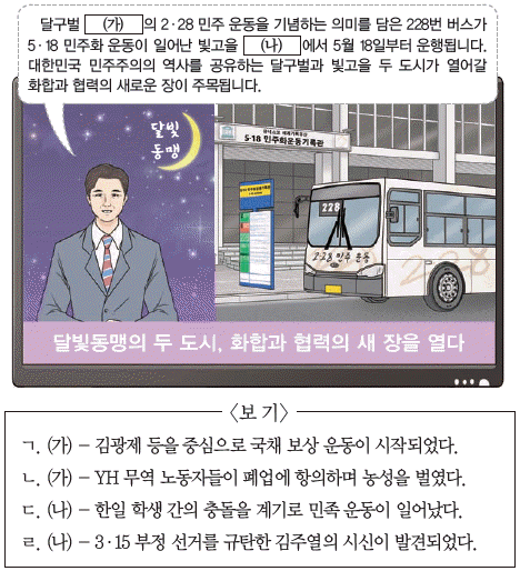 (가), (나) 지역에서 있었던 사실로 옳은 것을 <보기>에서 고른 것은? [2점]