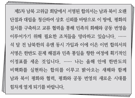 다음 연설문을 발표한 정부의 통일 노력으로 옳은 것은? [2점]