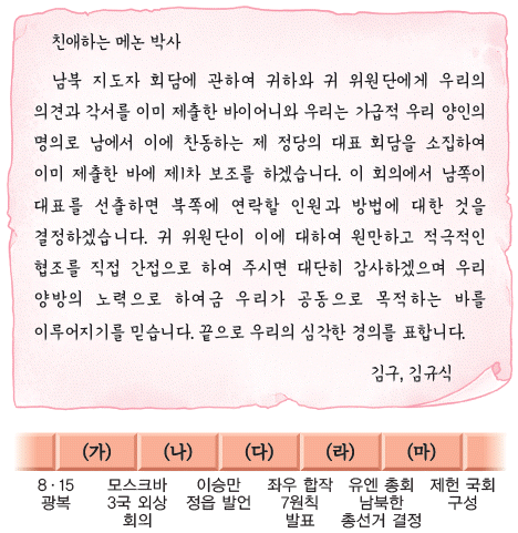 다음 편지가 작성된 시기를 연표에서 옳게 고른 것은? [2점]