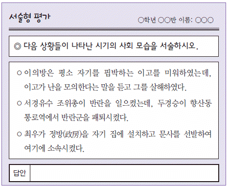 다음 서술형 평가의 답안에 들어갈 내용으로 가장 적절한 것은? [1점]
