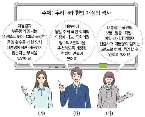 (가)~(다) 학생이 발표한 내용을 일어난 순서대로 옳게 나열한 것은? [2점]
