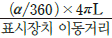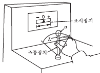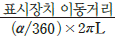 그림의 선형 표시장치를 움직이기 위해 길이가 L인 레버(lever)를 α° 움직일 때 조종반응(C/R) 비율을 계산하는 식은?
