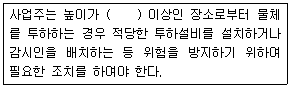 다음은 산업안전보건법령에 따른 작업장에서의 투하설비 등에 관한 사항이다. 빈칸에 들어갈 내용으로 옳은 것은?