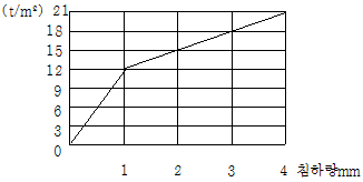지내력 시험을 통하여 다음과 같은 하중-침하량 곡선을 얻었을 때 장기하중에 대한 허용 지내력도로 옳은 것은? (단, 장기하중에 대한 허용 지내력도= 단기하중에 대한 허용 지내력도×1/2)