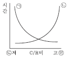 다음 그림은 C/R비와 시간과의 관계를 나타낸 그림이다. ㉠~㉣에 들어갈 내용이 맞는 것은?