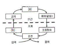 그림과 같은 인간-기계 시스템의 정보 흐름에 있어 빈칸의 (a)와 (b)에 들어갈 용어로 맞는 것은?