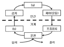 그림과 같은 인간 - 기계 시스템의 정보 흐름에 있어 빈 칸의 (a)와(b)에 들어갈 용어로 옳은 것은?