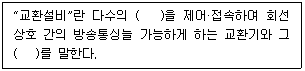 방송통신설비에 사용하는 용어 중 교환설비에 대한 설명이다. 괄호에 들어 갈 내용으로 맞게 나열된 것은?