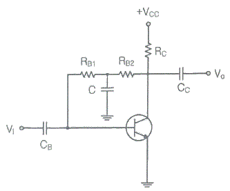 다음 그림과 같은 전압궤환 바이어스회로에서 콘덴서 ‘C'에 대한 설명으로 틀린 것은?