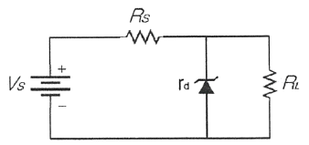 다음 그림의 정전압 다이오드 회로에서 입력이 ±2[V]변화할 때, 출력전압의 변화는? (단, 제너 다이오드의 내부저항은 rd=4[Ω], 저항은 Rs=200[Ω]이다.)