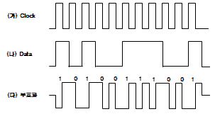 그림의 (가)와 (나)를 이용하여 (다)와 같이 부호화하였다. (다)의 부호화 방식은?