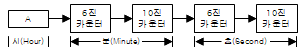 다음 보기의 시계를 설계하기 위한 블록도에서 '시(Hour)'를 나타내는 A에 해당하는 카운터로 옳은 것은?