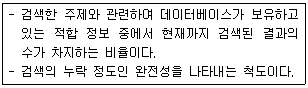 다음에서 설명하는 검색 결과의 평가 척도에 해당하는 것은?