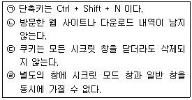 다음 중 크롬 브라우저의 시크릿 모드에 대한 설명으로 알맞은 것을 모두 고른 것은?