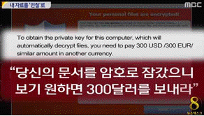 다음은 어떤 악성프로그램에 대해 방송에서 보도된 화면이다. 이 악성프로그램을 가리키는 말은?