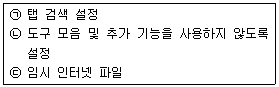 다음 중 인터넷 익스플로러의 '기본 설정 복원'의 초기화에 자동으로 포함되는 항목만을 모두 고른 것은?