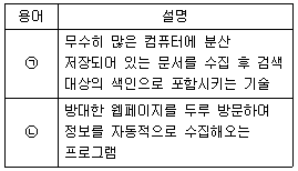 다음 중 ㉠과 ㉡에 들어갈 검색엔진 관련 용어가 알맞게 짝지어진 것은?