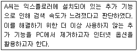 다음 사례를 해결하기 위한 '인터넷 옵션'의 탭 메뉴는?