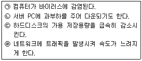 다음 중 로봇이 웹에 끼칠 수 있는 악영향을 모두 고른 것은?(문제 오류로 전항 정답 처리 되었습니다. 여기서는 1번을 누르면 정답 처리 됩니다.)