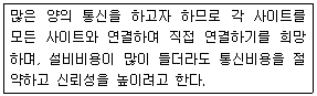 다음에서 설명하는 환경에 적합한 네트워크 토폴로지는 무엇인가?