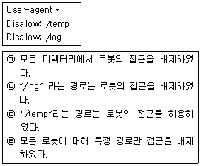 다음은 로봇 배제 표준을 설정한 것이다. 이에 대한 설명으로 알맞은 것은?
