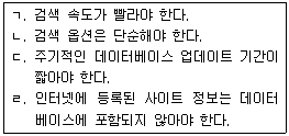 다음 보기에서 검색엔진이 갖추어야 할 조건을 모두 고른 것은?