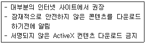 다음 설명에 해당하는 인터넷 익스플로러의 인터넷 영역 보안 수준은?