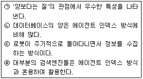 다음 검색엔진 구축 방식 중, 매뉴얼 인덱스 방식의 특징을 모두 고른 것은?