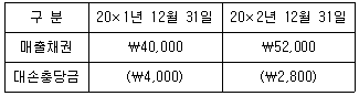 다음은 (주)관세의 재무상태표 중 매출채권과 대손충당금에 관한 부분이다.