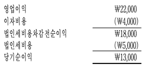 다음은 (주)관세의 20×1년도 포괄손익계산서의 일부이다. 아래 자료를 이용하여 이자보상비율을 구하면?