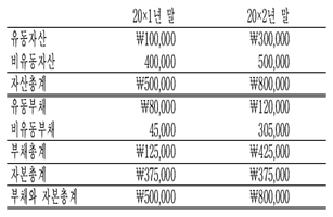 다음은 (주)관세의 20×1년과 20×2년의 요약 재무상태표 정보이다.